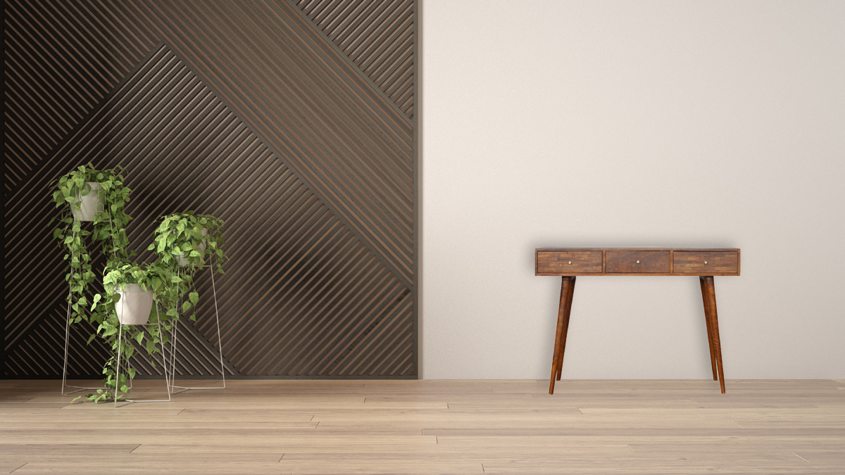 This beautiful console table has been constructed from 100% solid mango wood and features 3 drawers perfect for storage 2 of which have an assorted pattern on the front. Some other products features include Nordic style legs and shiny candle knobs for easy access to and from the drawers. A lovely versatile piece that will complement any room perfectly.