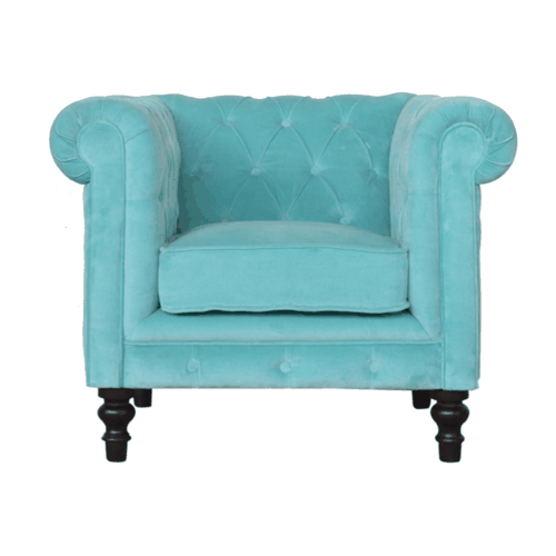 Dropship & Wholesale Aqua Velvet Chesterfield Armchair