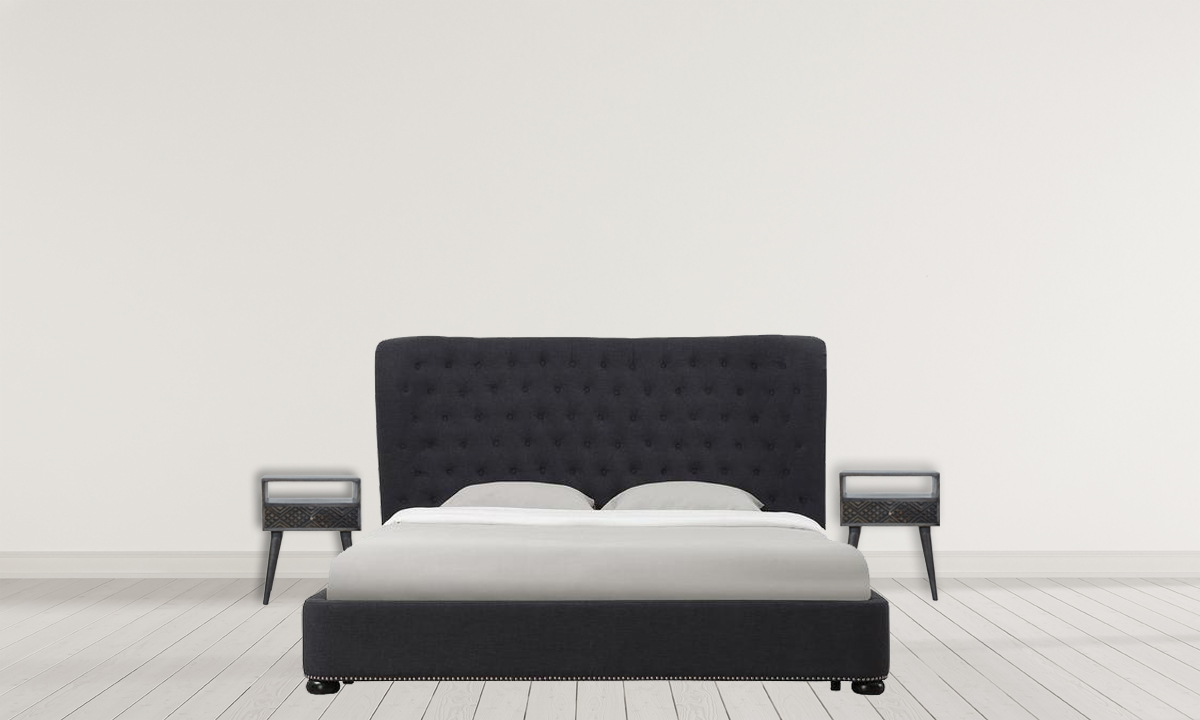 Dropship & Wholesale Ash Black Carved Drawer Nightstand
