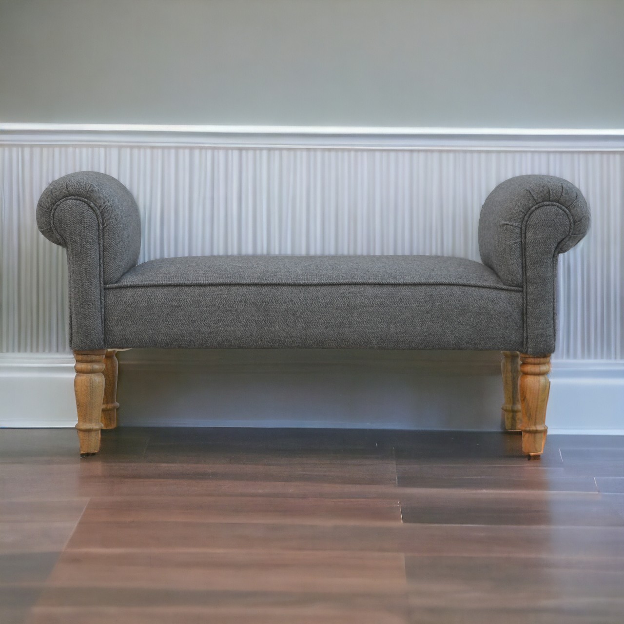 Black Tweed Bench with Turned Feet