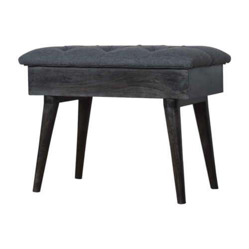 This chic storage bench in a Nordic tweed design has been upholstered in a charcoal tweed and features a stylish deep button design on top for comfort and design. The legs have been constructed from 100% solid mango wood in a ash black finish that compliments the fabric beautifully.