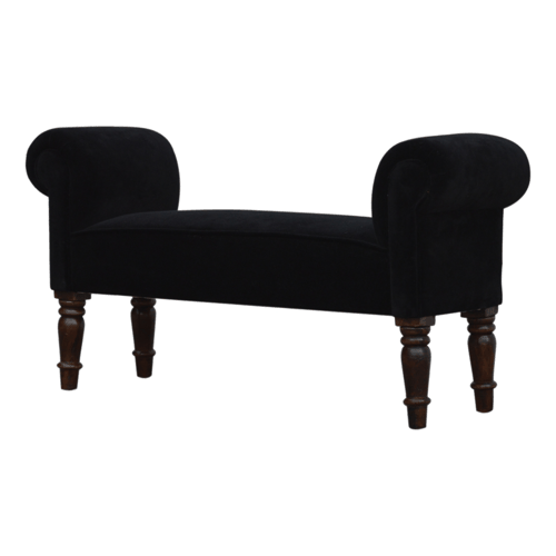 This lovely bench is ideal for a hallway, end of the bed, or simply any living area in your home which is also ideal for extra seating. In an amazing black cotton velvet featuring turned legs constructed from 100% solid mango wood in a walnut finish. This bench will serve handy all over the home, available in many different colours.