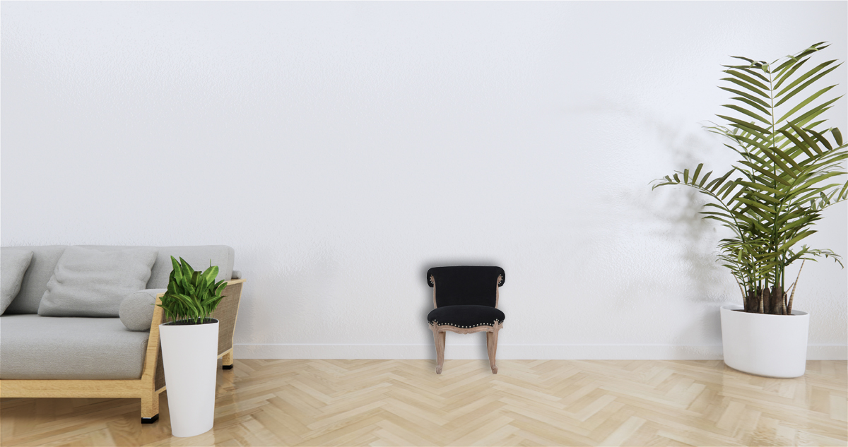 Add class and style to your home with this occasional chair. The upholstered black cotton velvet fabric goes beautifully with the studded design giving the piece an overall unique and chic look. With solid wooden legs constructed from 100% solid mango wood with a sunbleach finish, the chair provides strength and durability and can be incorporated in different home settings and interiors.