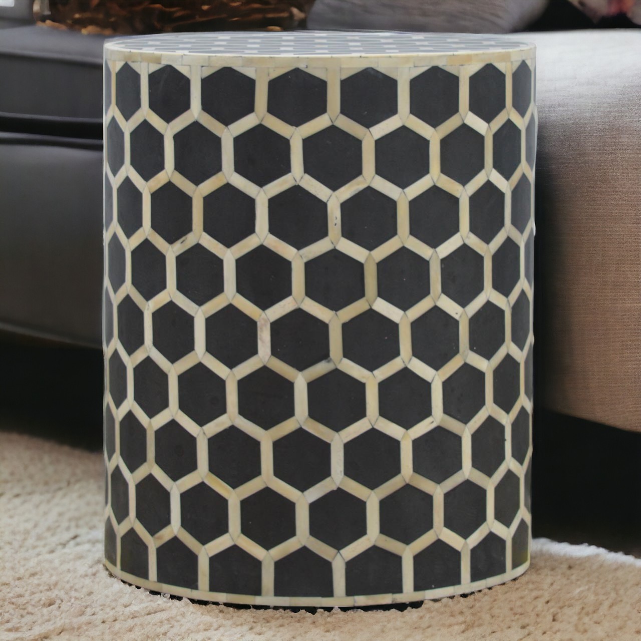 This little stool is a versatile piece that can be used all over the house. It can be used as a footstool, coffee table, games table, or occasional seat in any setting. It has a beautiful bone inlay pattern that will add depth and character to a simple interior. The bone inlay is sourced responsibly from deceased animals such as camels, goats, and buffaloes.