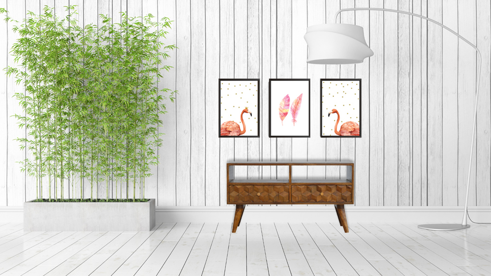 The main feature of this media unit is the hand carved cube drawer front which makes the pieces from this collection stand out. It has been constructed from 100% solid mango wood in a chestnut finish, it features 2 open slots for extra storage and stands on 4 Nordic style legs. It can be partnered with the other pieces from the range or stand individually as its style is versatile and can fit into different types of interiors.