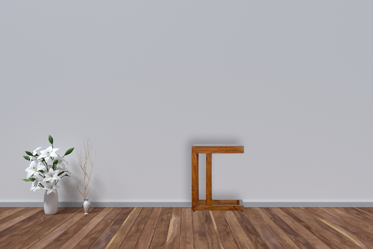 This one sided geometric side table has a refined shape and fits into any type of interior either country homes or compact city apartments. The base is constructed from 100% solid mango in a chestnut finish and is made to fit many types of woods and designs of furniture.