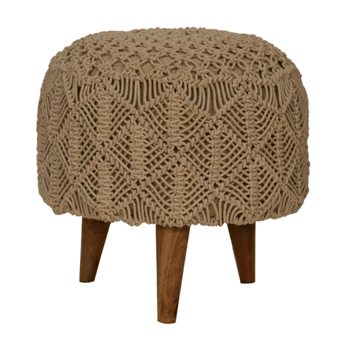 This contemporary style footstool will compliment many décor styles, introducing a modern, boho vibe into any living space or home interior. It has been braided from a beige thick and durable 100% cotton and has nordic style legs for extra durability.