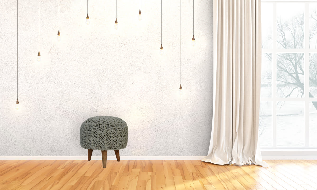 This contemporary style footstool will compliment many décor styles, introducing a modern, boho vibe into any living space or home interior. It has been braided from a sea green thick and durable 100% cotton and has nordic style legs for extra durability.