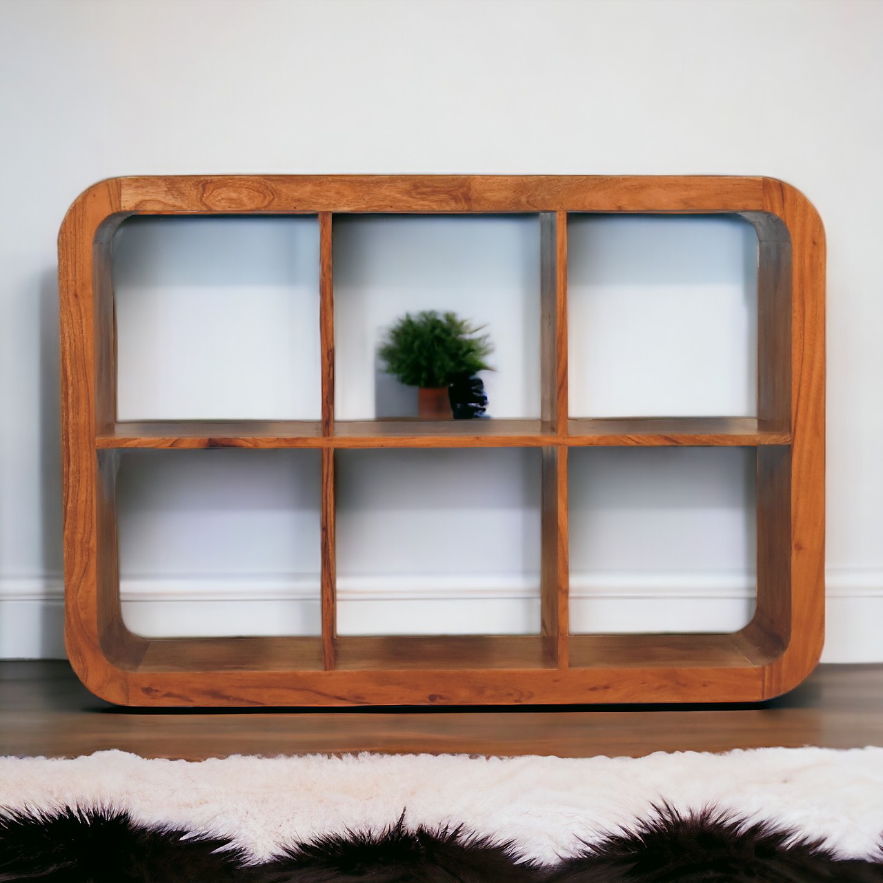 This Darcy Display Unit to your interior, has smooth round edges, making it child and pet-friendly in the home. It is constructed from 100% solid acacia wood in an caramel finish and features 6 open spaces that can be used to display ornaments, plants, frames or anything of your choice. This unit would work well in homes and business.