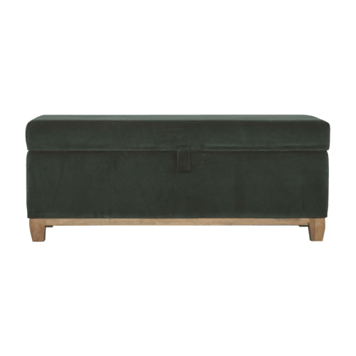 This bench will make a handy addition to the home. It has been upholstered in a emerald cotton velvet fabric and has a solid wood body and feet. A lovely and elegant piece for the home.