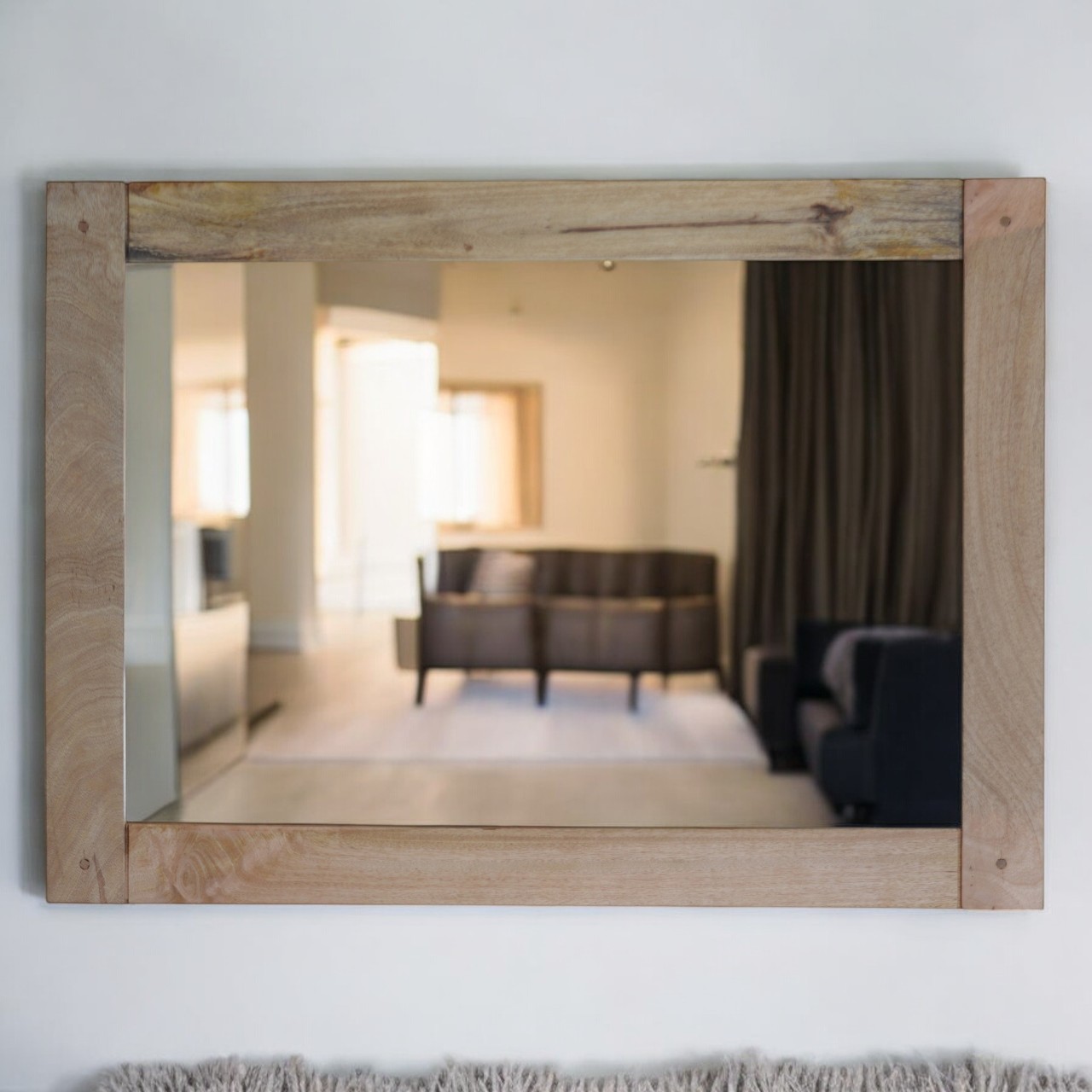 This Solid Wood Mirror has a minimalist design with a solid wood frame around an appearing glass that will go with any decor. This gorgeous mirror is a practical and elegant addition to your home, reflecting light into dark corners and providing you with a clear reflection to check your appearance.