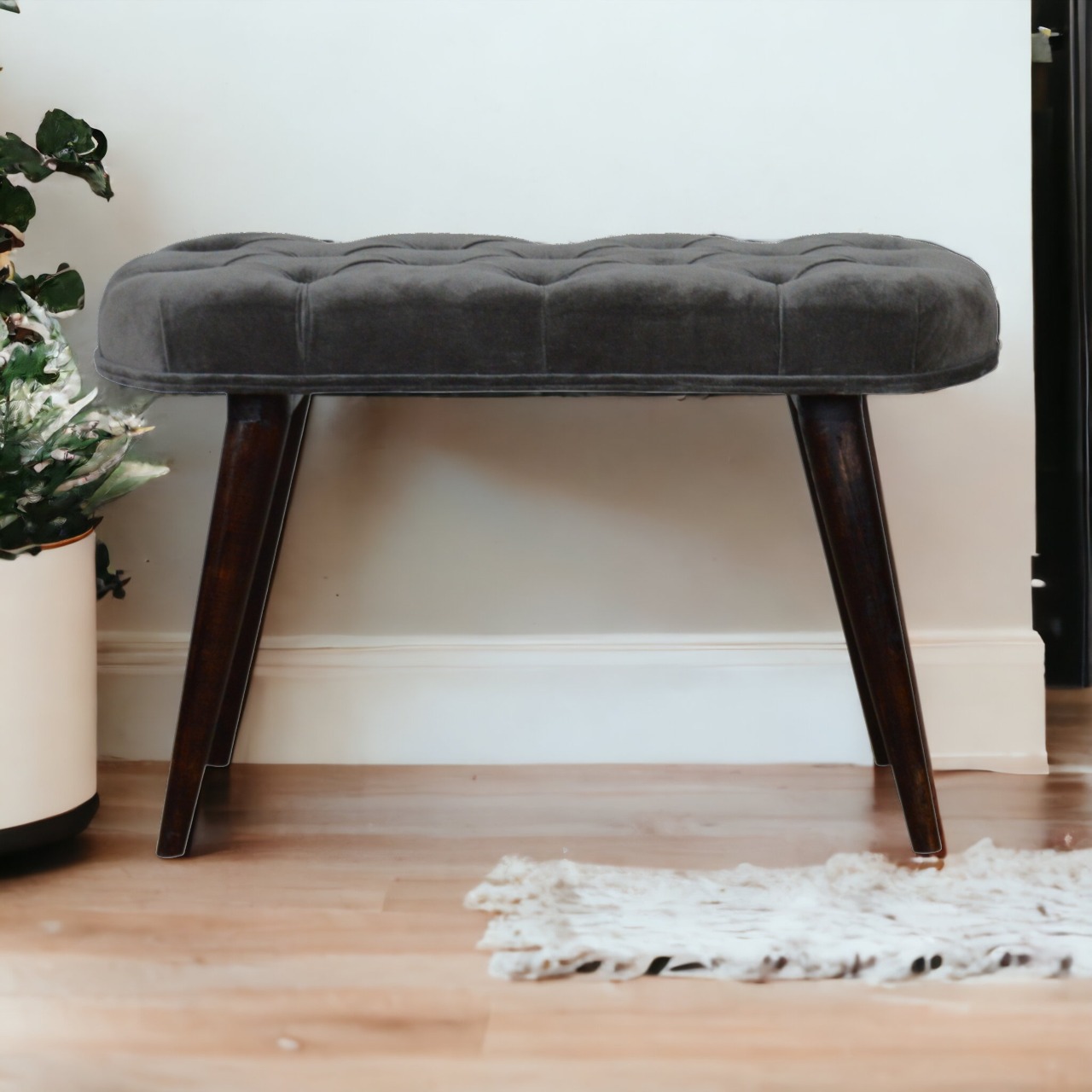 This Nordic style bench has been upholstered in a beautiful Grey cotton velvet fabric and features a classy deep-button design on the top. The bench stands on 4 legs constructed from 100% solid mango wood in a walnut finish and it is the perfect piece to add to your bedroom or hallway as a finishing touch in the home.