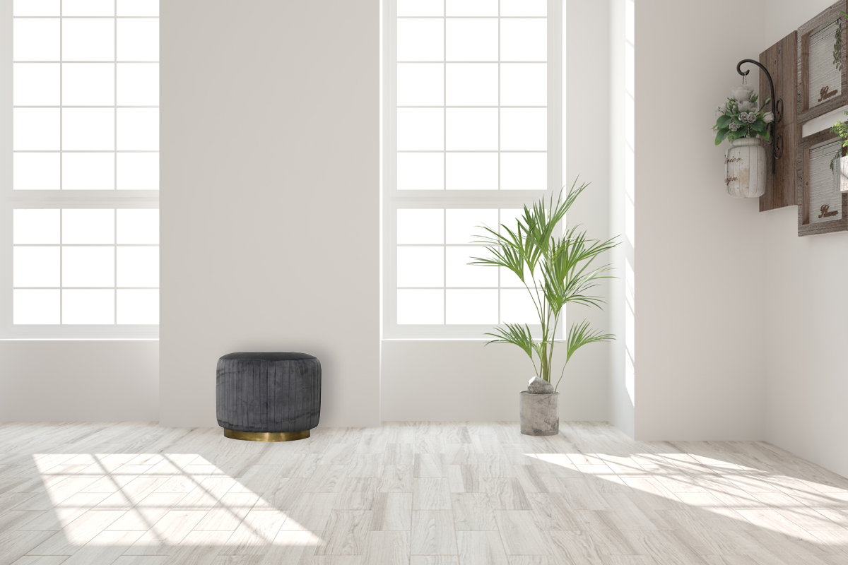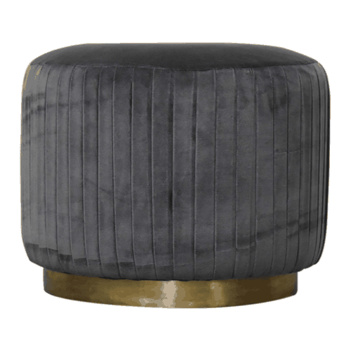 This beautiful and fashionable footstool will make the perfect addition to any bedroom or living room. It has been upholstered in a luxurious grey cotton velvet fabric with a pleated design featuring a gold brass base. Perfect for putting your feet up, using as a handbag stand, or as an accent piece in the home.