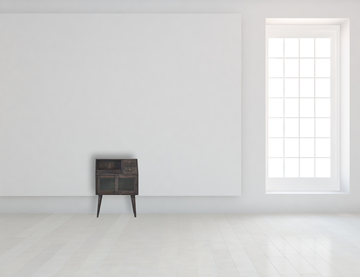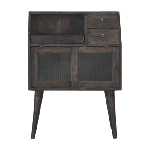 This mini handy cabinet has been constructed from 100% solid wood in a walnut finish. It features 2 mini drawers and a sliding compartment perfect for storage. The perfect addition to the living room or bedroom.