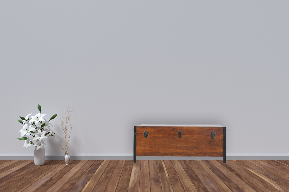 Add this blanket box to your hallway, end of your bed or any part of the house for extra storage. It has been constructed from 100% solid mango wood in an oak-ish finish and inspired by our industrial collection with 2 iron latches and 4 iron feet. Its simple design allows you to incoporate it with other pieces of furniture from other collections.