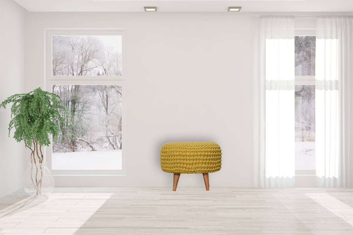 The elegant and compact design of this oblong footstool makes it a perfect addition to any style of room. It is light and small and easy to carry, as well as stable and durable ensuring long-time use. It features nordic style legs which have an oak-ish finish and a lovely mustard woven top, giving it an overall clean and modern finish.