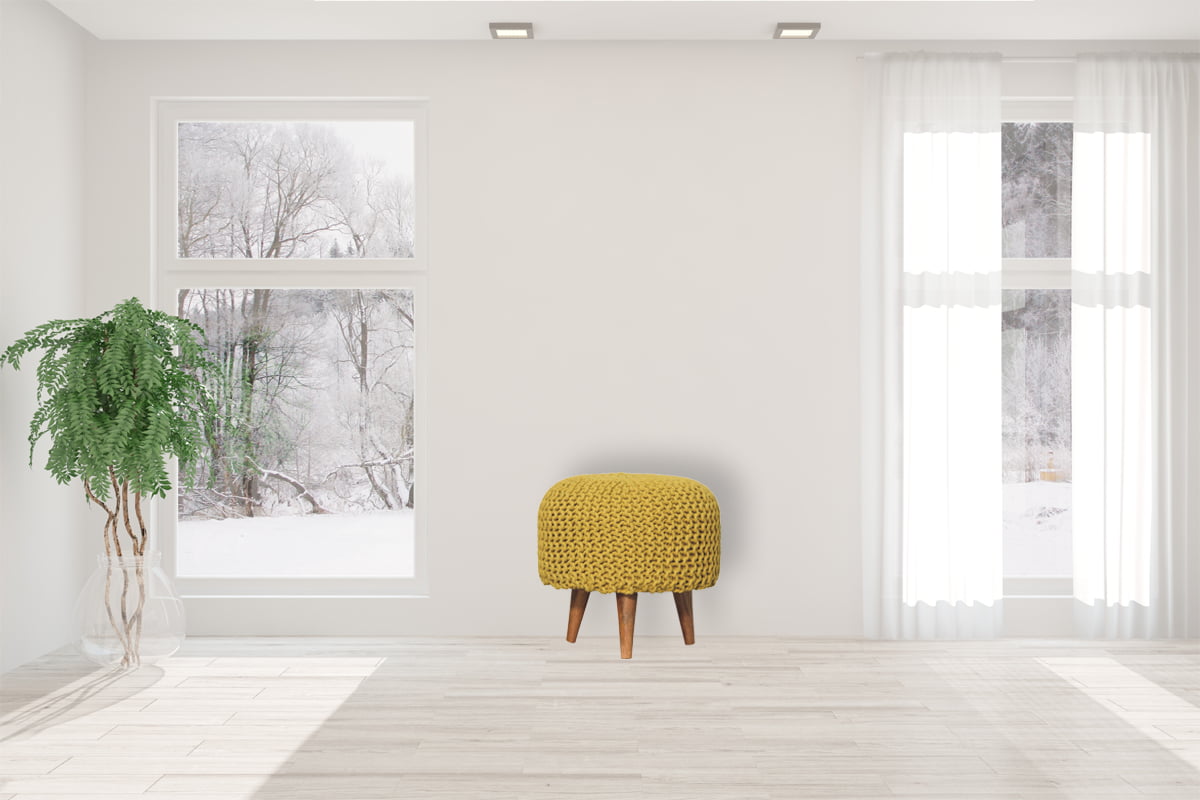 The elegant and compact design of this round footstool makes it a perfect addition to any style of room. It is light and small and easy to carry, as well as stable and durable ensuring long-time use. It features nordic style legs which have an oak-ish finish and a lovely mustard woven top, giving it an overall clean and modern finish.