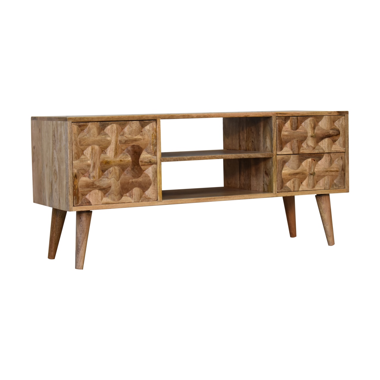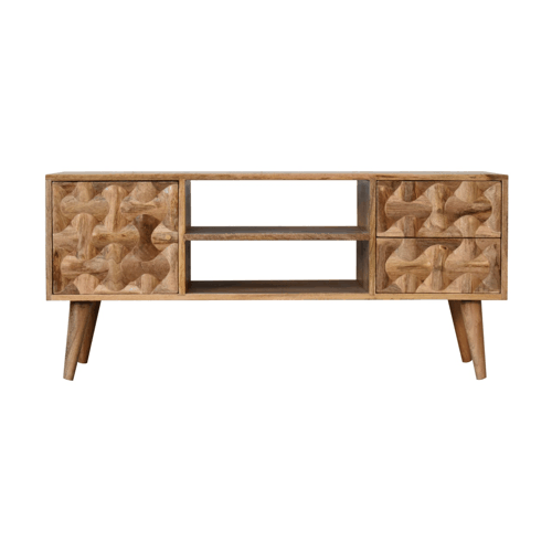 Constructed from solid mango wood in an oak-ish finish, this handsome media unit will look extra stylish in the living room. Some features include 2 drawers, 1 cabinet, shiny brass knobs, and nordic style legs. It’s a classic yet highly functional product, so make sure to pair it with other products from the gorgeous Kita range.