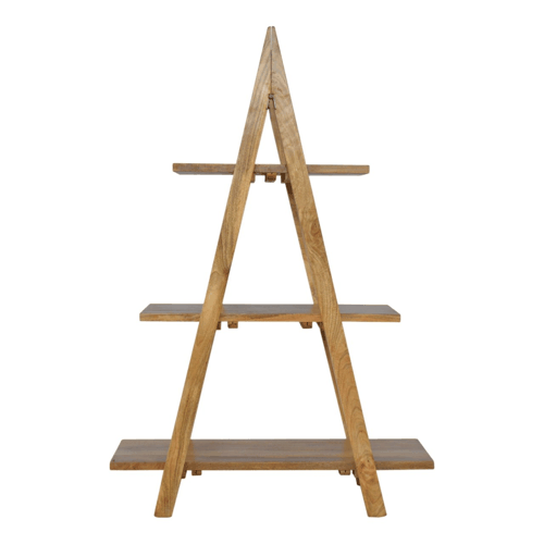 This open design display unit has been constructed from 100% solid mango wood and finished in an oak-ish colour with 3 different sized shelves. It can fit into any type of interior and be used in any room of the home as it is a very simplistic and versatile piece and can be used for storing any photo frames, ornaments, or books you may want to have on display.