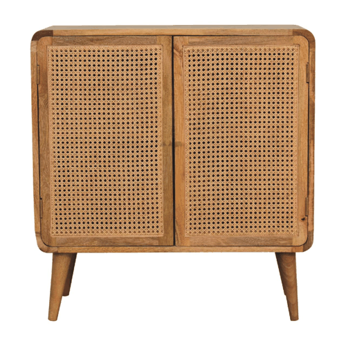 This stylish Nordic Rattan cabinet combines woven front doors which have a smooth oak-ish finish body and legs. Constructed from 100% solid mango legs it features space inside perfect for storage, a shiny knob on the drawers, and nordic style legs. Make full use of this cabinet in the living room and partner it with the rest of the collection.