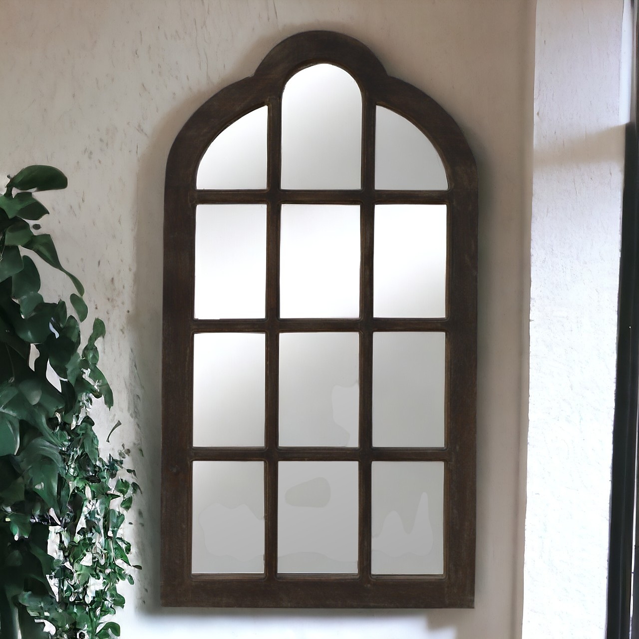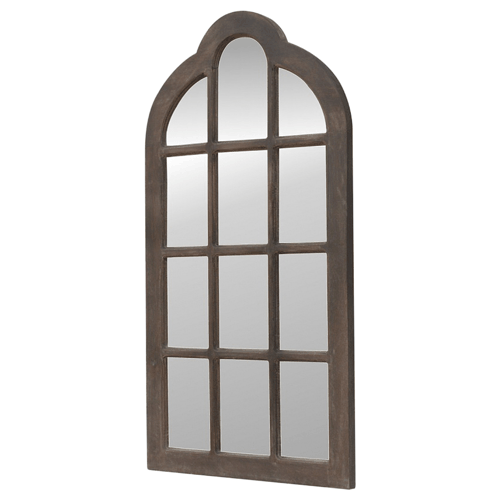 This arched shaped mirror frame is constructed from 100% solid mango wood, and has a smooth sun bleach finish. Also this mirror frame has a lovely wooden window frame pattern.