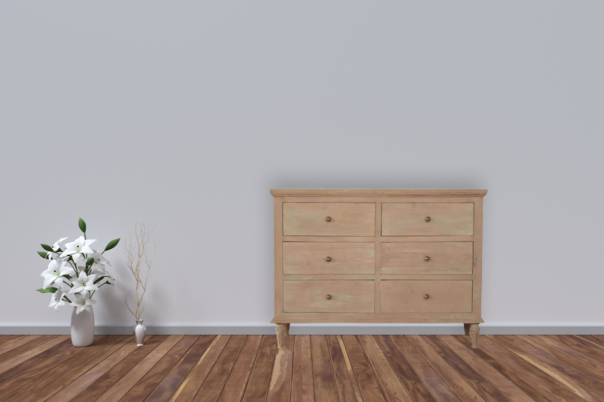 This 6 drawer chest will come in useful all over your home when you need a little bit of extra storage space, with its six drawers that come with ring pull handles made from brass. Suiting most decors, this 100% solid mango wood unit has been built with sustainably sourced timbers and useful for storage to keep your home organised. Other features include a smooth sun bleached finish and hand turned feet.