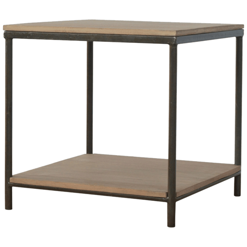 This is our metal base 4 round leg side table with a wooden top and bottom, constructed from 100% solid mango wood, a perfect simplistic addition to any home. This hand crafted piece of furniture is perfect for either a side table or a coffee table.