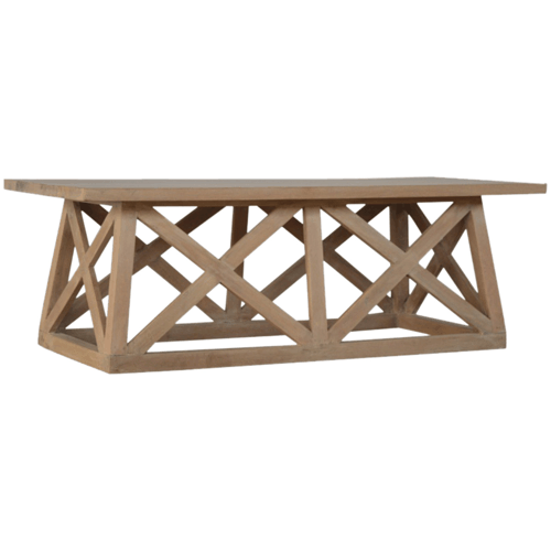This beautiful tristle coffee table is constructed from 100% solid mango wood and has a smooth sunbleached finish. A lolvely and practical addition to your home.