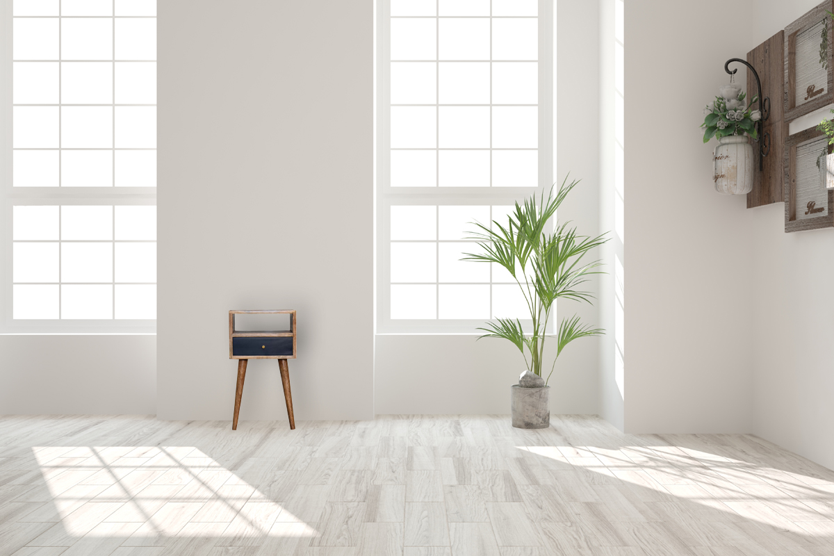 This beautifully designed nightstand is constructed from 100% solid mango wood and has a fine oak-ish finish. Useful storage space is available with 1 navy hand-painted drawer, 1 shelf, and a decent-sized tabletop to place any ornaments. Other features include 4 Scandinavian-styled legs to give the piece a modern style that will suit most decors.