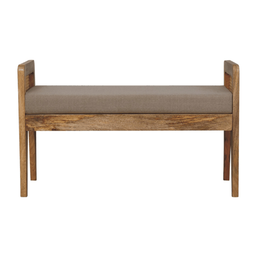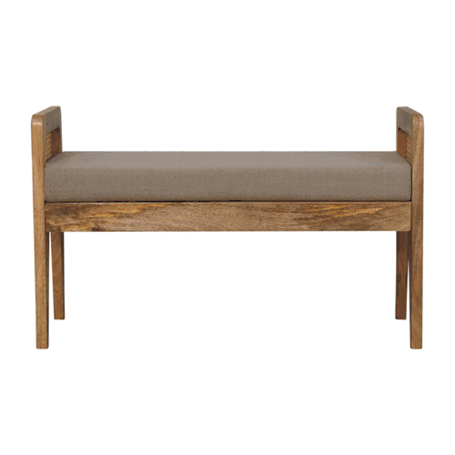 Incorporate style, fashion, and coziness into your hallway with this bench. It has been constructed from 100% solid mango wood in an oak-ish finish and has 2 raised sides with rattan work on each side along with a comfy mud linen seat for maximum comfortability.