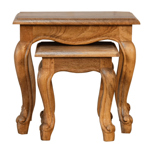 Oak-ish French Style Stool Set