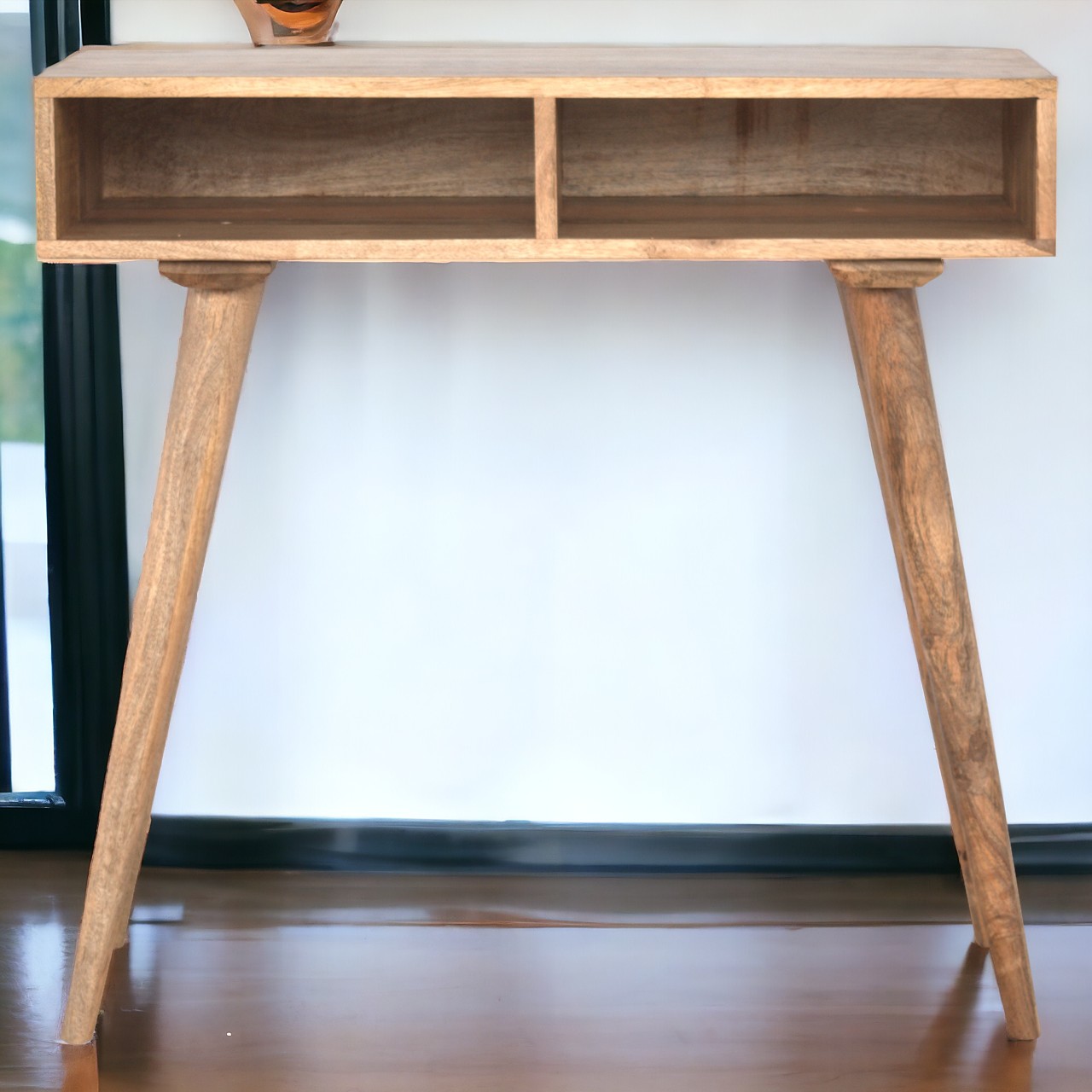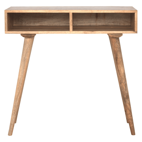 Inspired by modern design, this solid wood writing desk provides ample space for you to work on. It is constructed from 100% solid mango wood and has a fine oak-ish finish. Other features include 2 open shelves and a decent-sized tabletop. The perfect addition to any interior, with its clean design to suit most interiors.