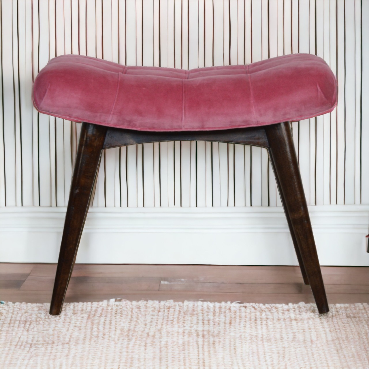 Dropship & Wholesale Pink Cotton Velvet Curved Bench