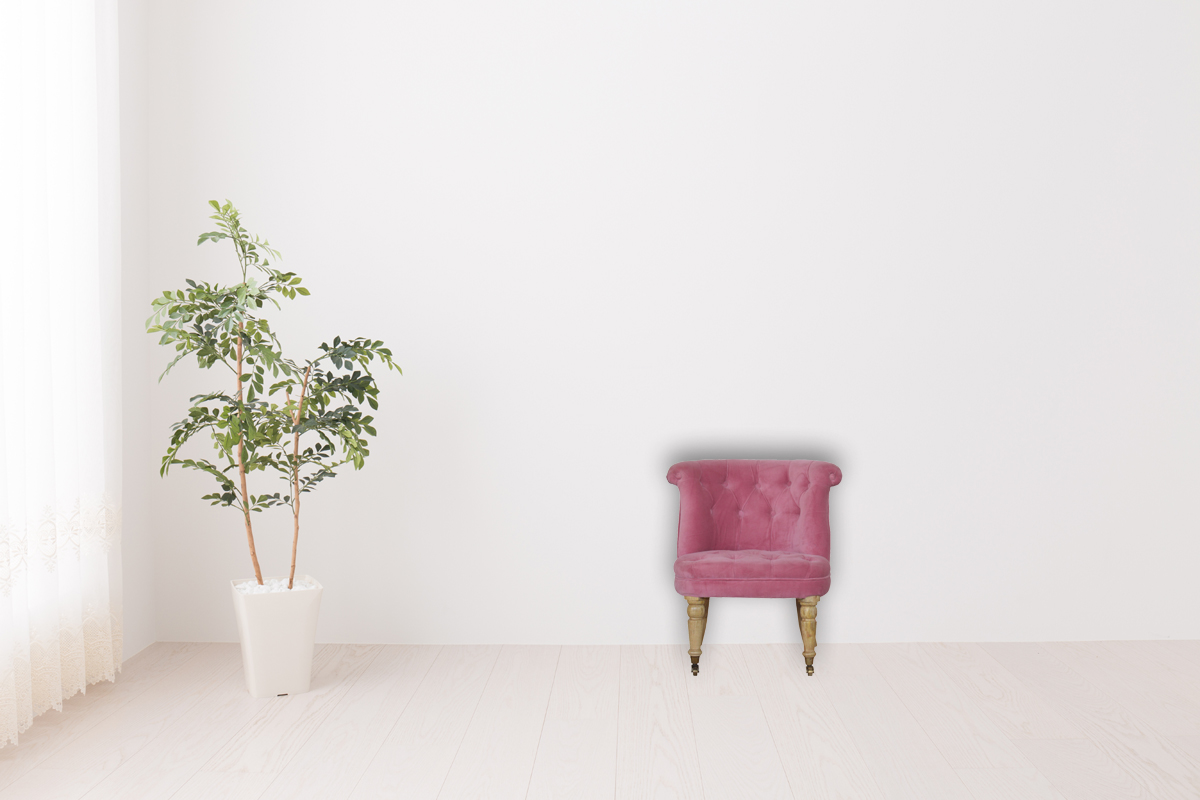 This petite accent chair is beautifully hand carved from 100% solid mango wood and upholstered in a beautiful pink cotton velvet. Other features include deep button tufts, 2 caster legs at the front and 2 tapered legs at the back. All 4 legs have a fine oak-ish finish. Perfect to add some extra character and definition to the home.