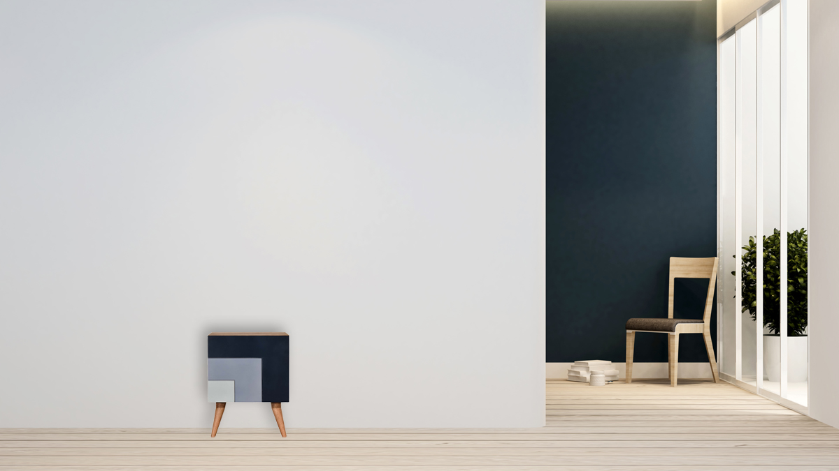 Offering a clean and sharp L pattern and hand painted in 3 rich shades of blue this nightstand offers plenty of room on top for a lamp, photo frame or books. Storage is offered with one door which can be used to easily store bits and pieces and keep them close and handy before bedtime. Other features incude nordic style legs and the body is constucted from 100% solid mango wood.