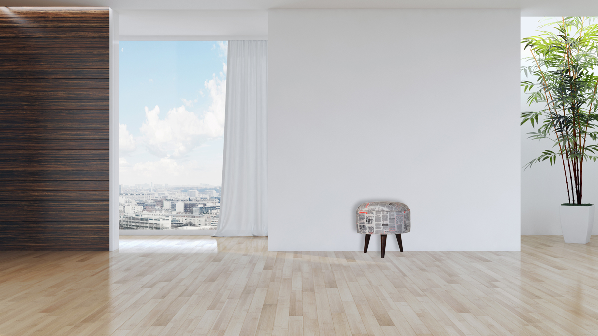 Dropship & Wholesale IN1018 – Round Footstool with News Print Velvet