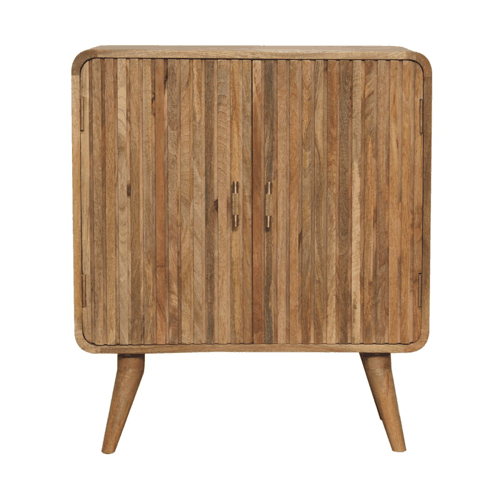 This beautiful T-bar Ridged Cabinet has been constructed from 100% solid mango wood and has a lovely natural oak-ish finish. It has features such as t-bar handles on the doors, 2 handy shelves inside as well as 4 Nordic style legs for stability and a modern touch. Make full use of this piece in your living room by letting it store all your belongings while providing charm.