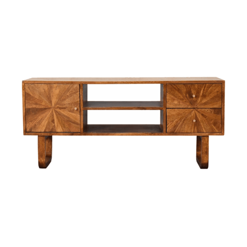 This chestnut media unit was built to be robust, durable and dependable. It has endless storage facilities with it able to truly fit the needs of every unique customer and keep your home organised. Its modern looking yet classical feel allows for it to fit into all different types of surroundings and keep your homely style. It is made with 100% solid mango wood with a fine chestnut finish.