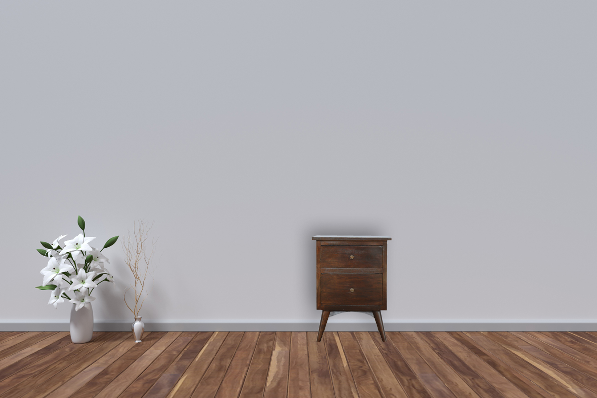 Enjoy the minimalistic and clean design that this nightstand offers. It has been constructed from 100% solid mango wood and has a light walnut finish. It features tapered handcrafted legs and two deep drawers to take care of everyday utility items. This nightstand or end table will add a definite and lasting character to your bedroom or living room. It can stand alone or be partnered with the other pieces from the walnut range.