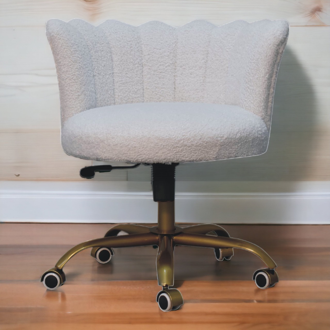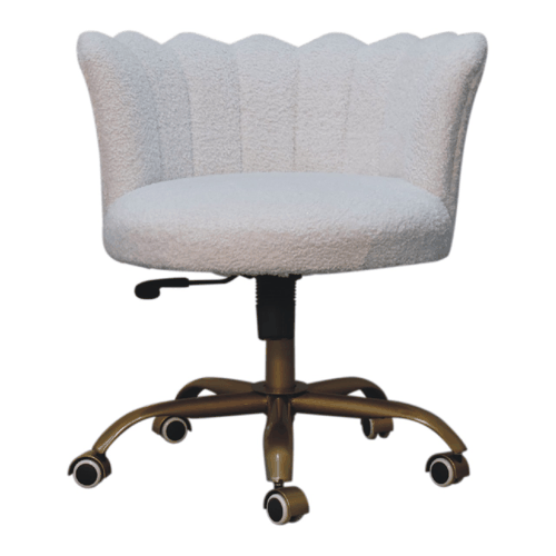 Upholstered in a snow white boucle this occasional chair would fit in beautifully in a bedroom or study room, it poses a simple yet elegant design meaning it will easily become your favourite piece in the home. It has a swival base meaning it can be moved around easily, and adjusted to your height accordinglky.