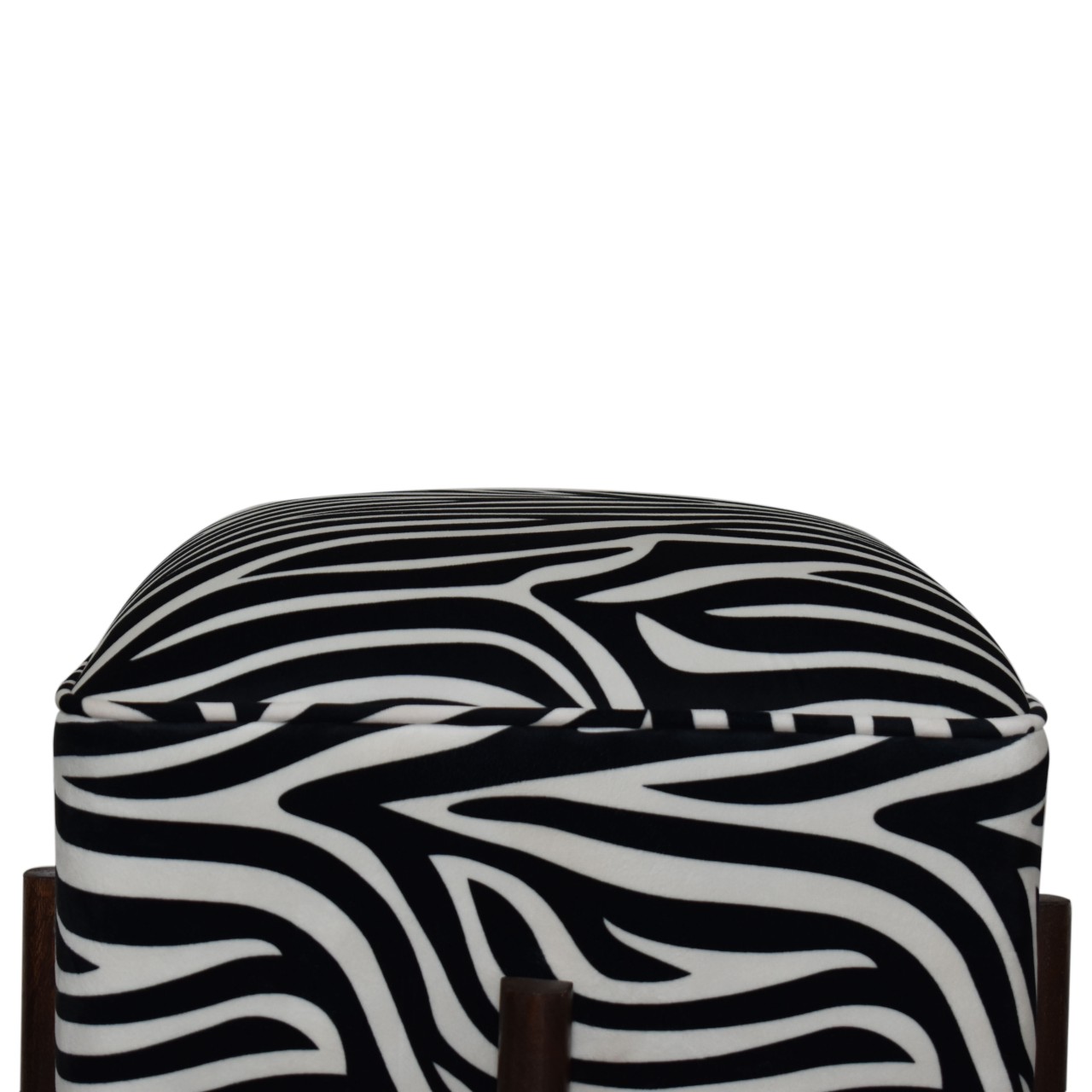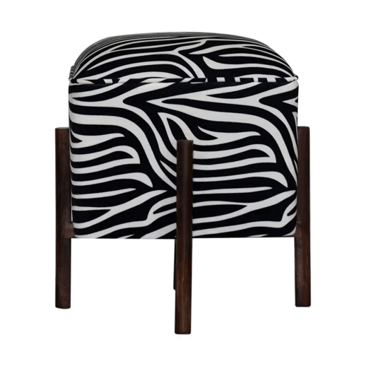 Combining the best of simplicity with the timeless look of luxury, this stylish footstool is upholstered in a zebra print cotton velvet and can be used in any part of the home as an accent piece, as a foot rest or as extra seating around a small table. Another feature of this piece are the 4 solid wood legs in a walnut finish, the supportive legs ensure durability, giving you a place to rest your feet for years to come.