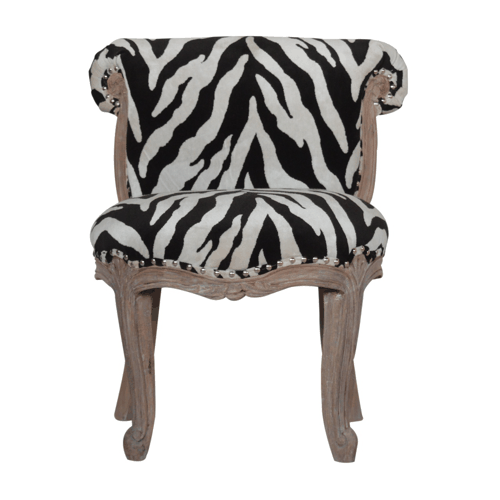 Add class and style to your home with this occasional chair. The upholstered zebra print fabric goes beautifully with the studded design giving the piece an overall unique and chic look. With solid wooden legs constructed from 100% solid mango wood the chair provides strength and durability and can be incorporated in different home settings and interiors.